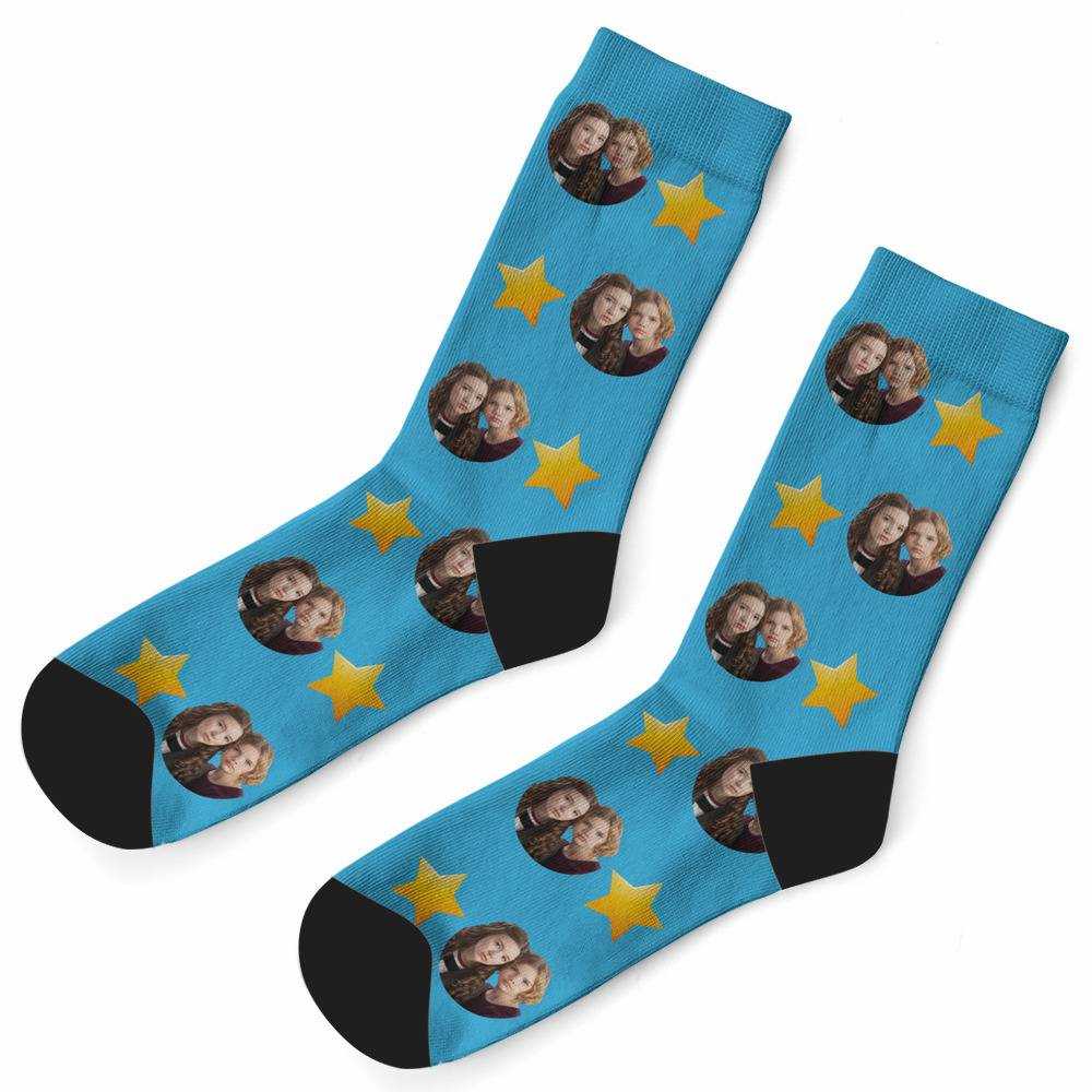 Jillian And Addie Socks Custom Photo Socks Twinkle Star Socks Blue - Put Your Face On Custom Face Socks. Create the Perfect Gift!